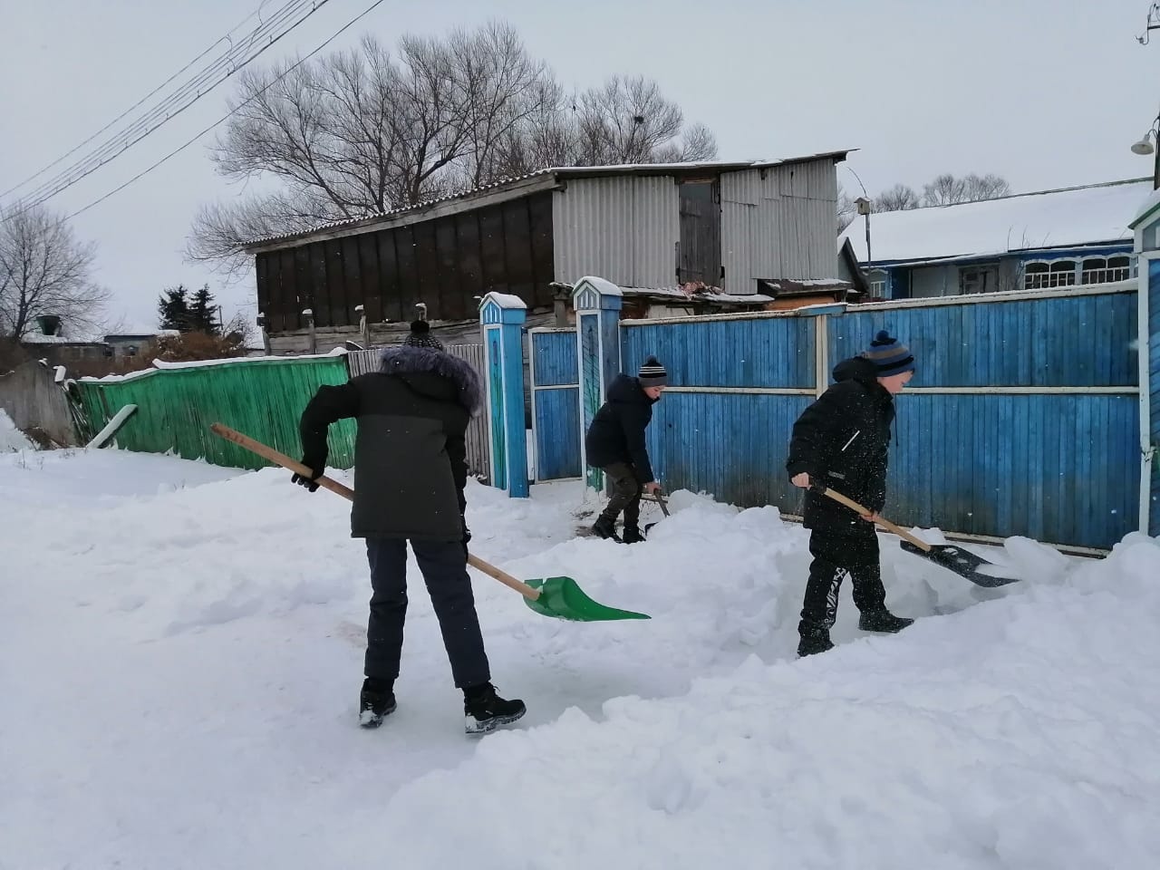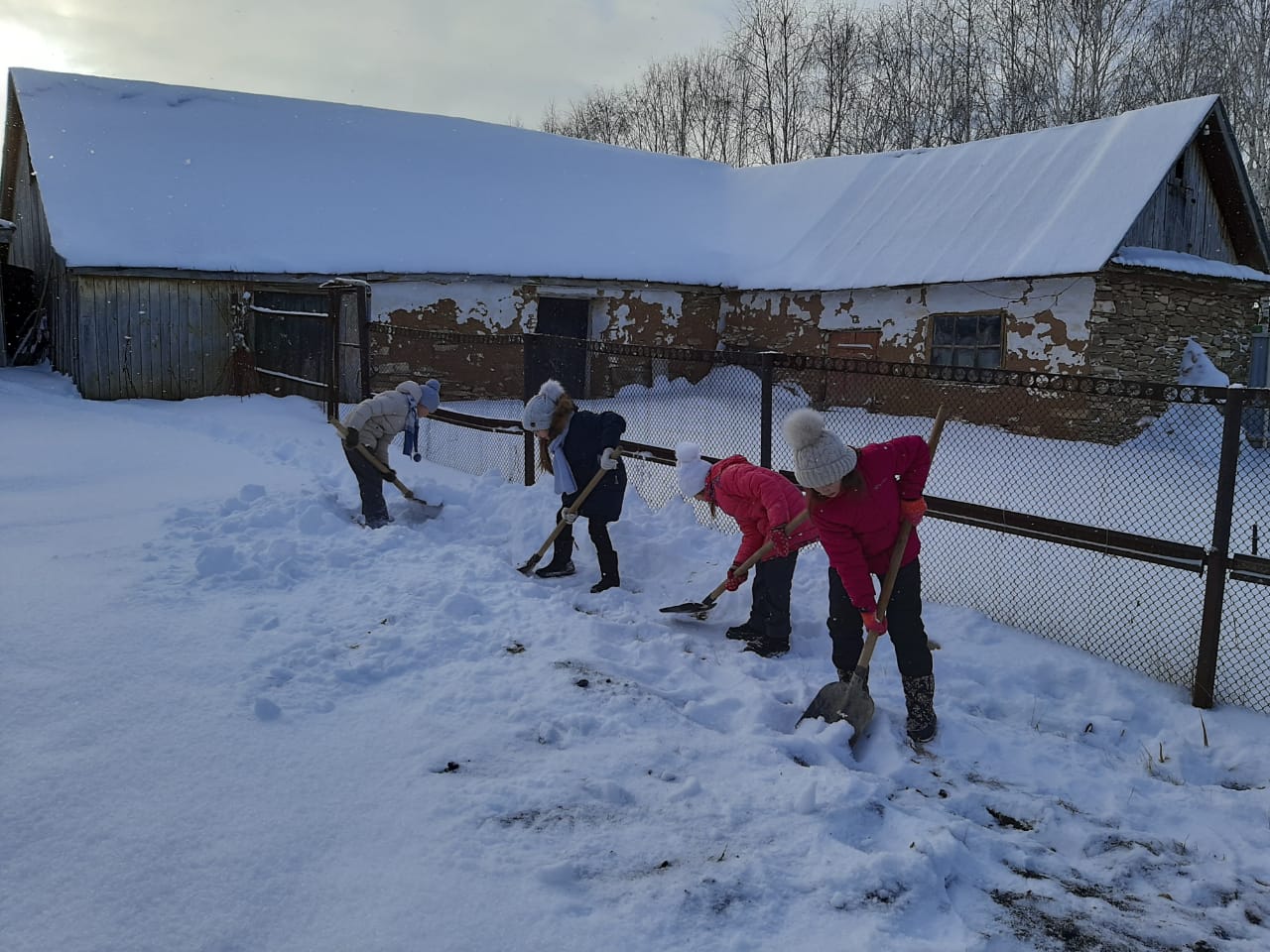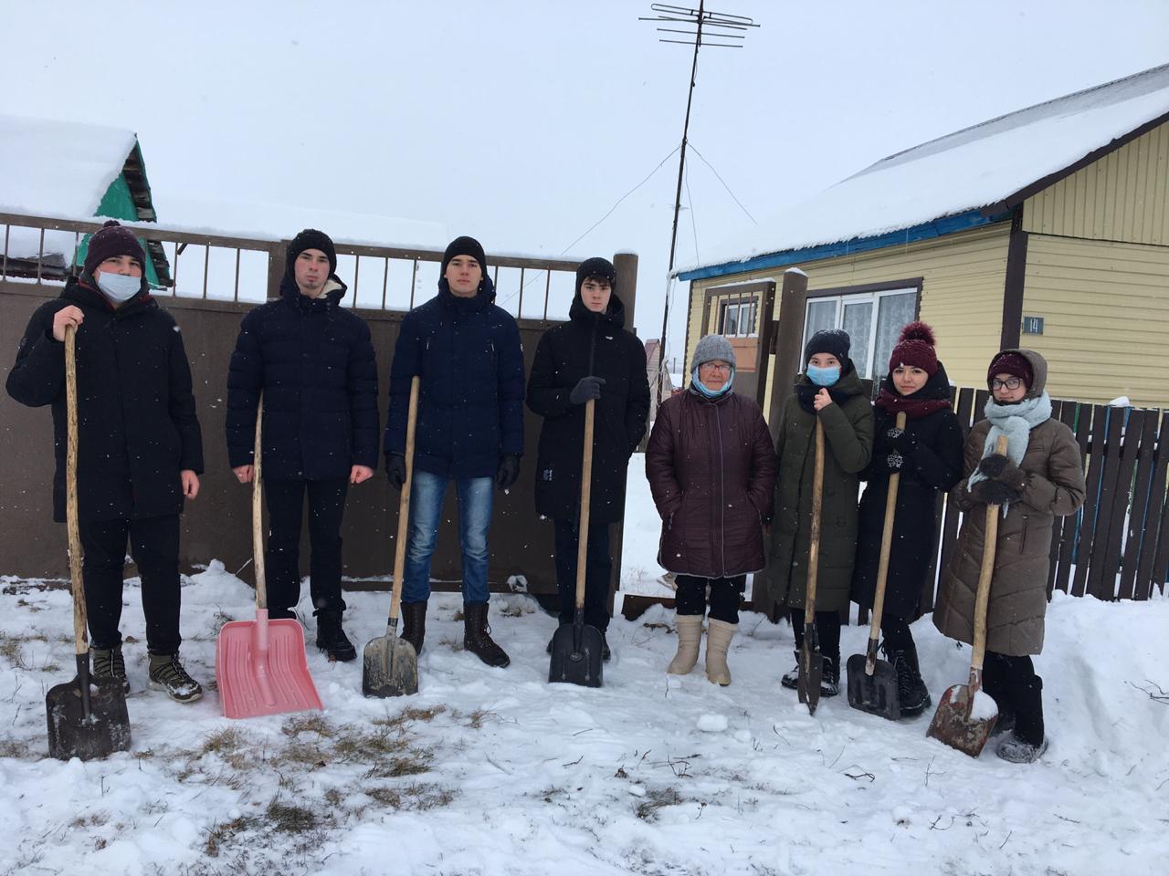 РОбущающиеся 4-11 классов вместе с классными руководителями пришли на помощь ветеранам труда. Ребята убрали снег во дворе, расчистили дорожки.