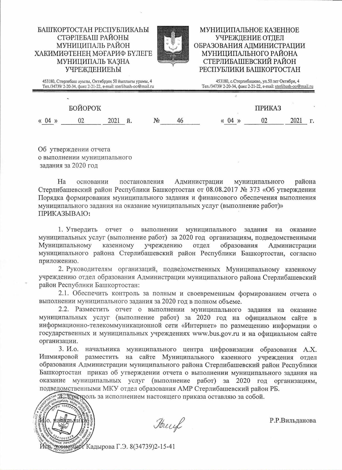 Приказ об утверждении отчета о выполнении муниц задания за 2020 год.jpg