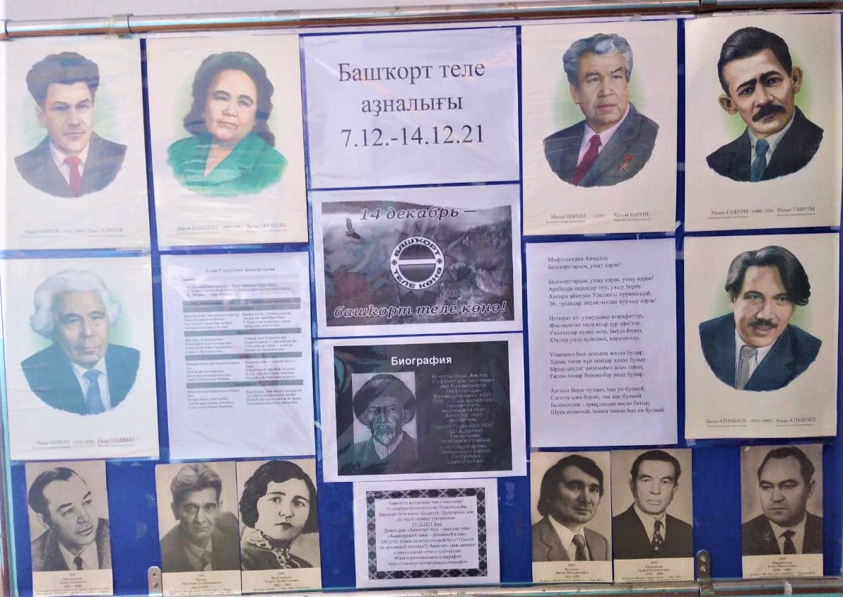 Сегодня, 7 декабря, в МБОУ СОШ с.Тятер-Арасланово объявлено о начале марафона башкирского языка:в школе во время перемен звучали песни и клипы, цитаты на башкирском языке, на интерактивных панелях показывали интервью и выступления учащихся. В коридоре школы был оформлен информационный стенд, посвящённый неделе башкирского языка.